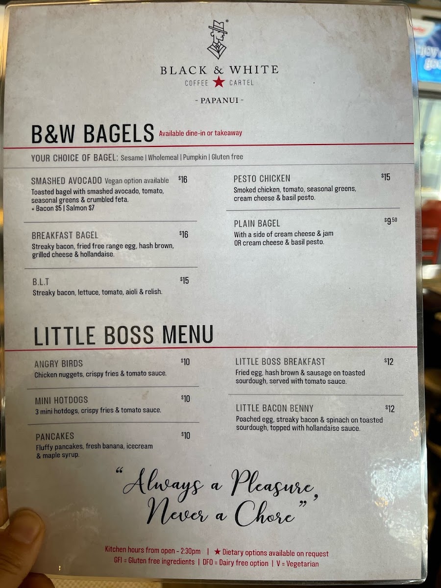 - B&W Bagels: Indulge in their Breakfast Bagel stuffed with fresh ingredients, or savor the delightful Smashed Avocado. The Pesto Chicken and classic B.L.T. bagels are also popular choices, all priced between NZ$15-$16.